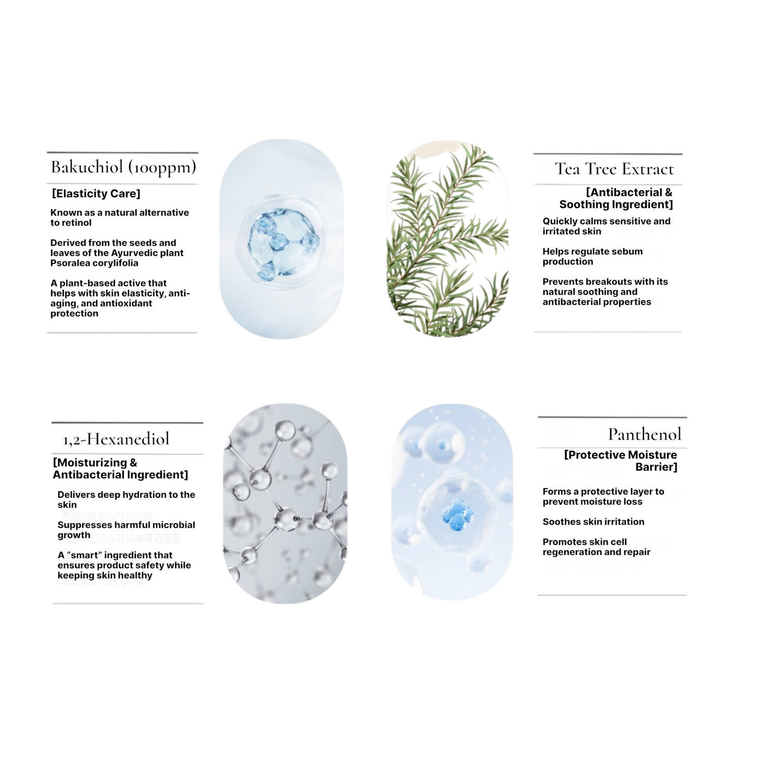 - Panthenol (Vitamin B5) – Strengthens the skin barrier and soothes irritation