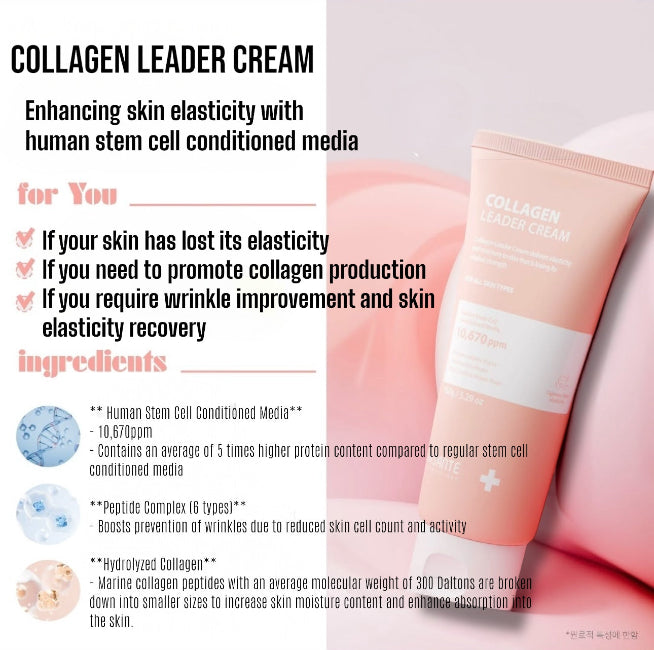 COLLAGEN Leader Cream is a collagen-infused firming cream that lifts sagging skin while enhancing hydration and vitality.